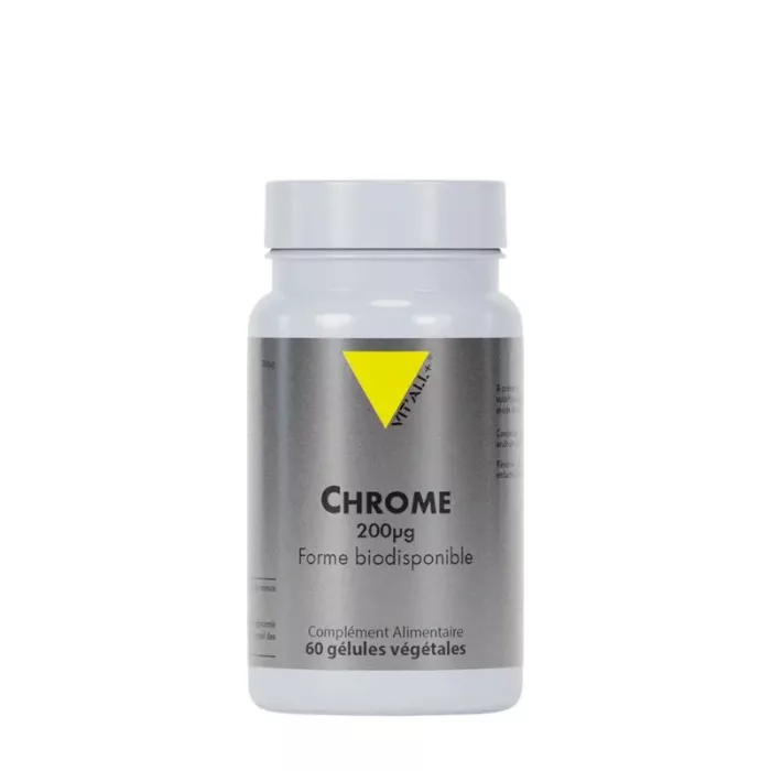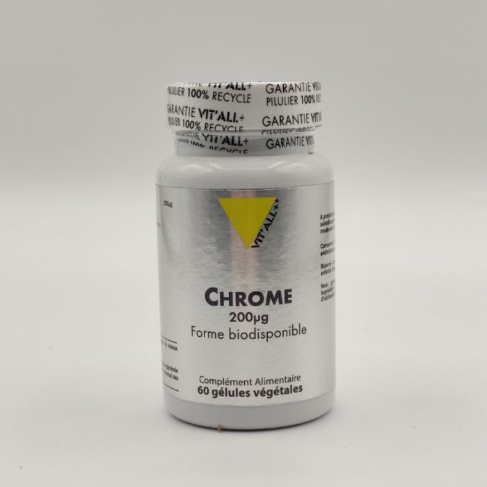 Le chrome est un oligo-élément essentiel qui favorise la fixation de l’insuline sur ses récepteurs et améliore ainsi son efficacité. On dit que le chrome améliore la réponse insulinique : l’insuline étant mieux fixée sur ses récepteurs, le message transmis est de “meilleure qualité” ainsi le corps a besoin de sécréter moins d’insuline pour une réponse similaire.
